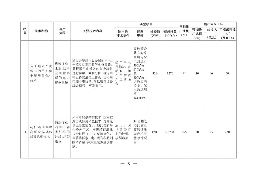 为贯彻落实党的二十大精神,大力支持低碳技术应用和推广,促进碳达峰碳中和目标实现,我部组织征集并筛选出一批先进低碳技术,编制了《国家重点推广的低碳技术目录(第四批)》,包括6类共35项低碳技术,现印发给你们。