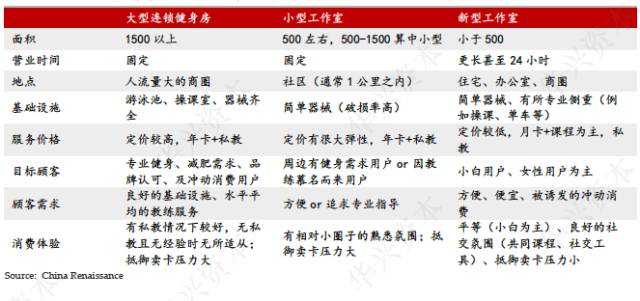 几种不同类型健身房模式对比,来源:华兴资本