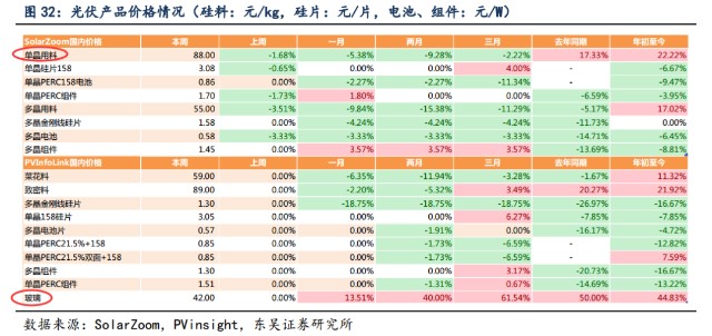 光伏玻璃建设期在18个月-24个月,产能启停难度同样较高。因此硅料和玻璃价格方面,我们认为玻璃的价格更加具有指导意义,因为其供需格局相对更好,更能代表全行业需求。