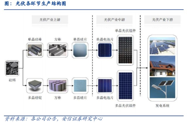 组件:隆基股份、天合光能、协鑫集成、晶澳科技、东方日升、赛伍技术、爱康科技、京运通、航天机电、中来股份、中利集团、拓日新能、芯能科技、亿晶光电等。